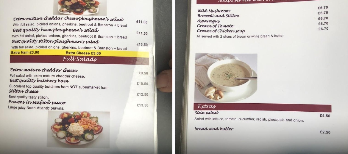 Had a very lovely cheese ploughman's. Absolutely delicious and all very fresh. Would highly recommend